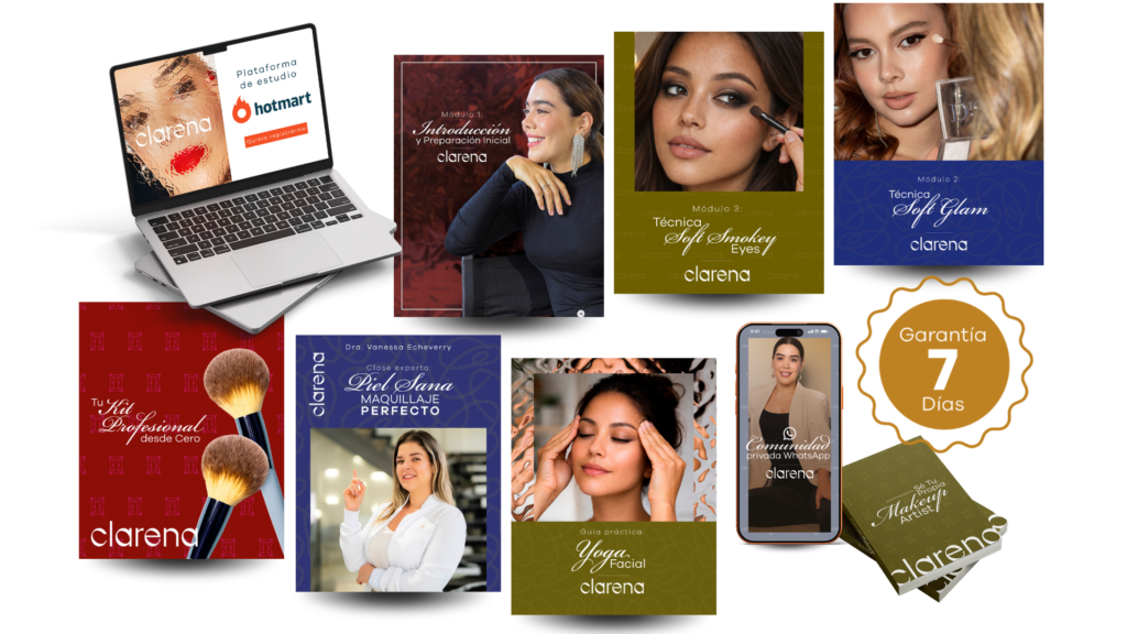 Soy Clarena Salamanca, artista y maquilladora profesional con más de 10 años de experiencia en la industria del maquillaje, trabajando en cine, campañas publicitarias, moda, fotografía y maquillaje para novias. Durante 6 años dirigí mi propia academia y llevo más de 8 años formando maquilladoras, ayudándolas a desarrollar una técnica sólida y a convertir su talento en una profesión.